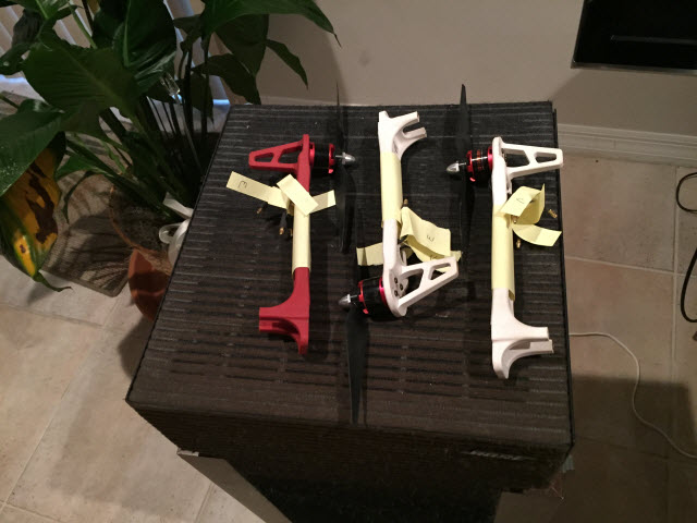 Sebastian put the arms into a couple of FedEx padded envelopes, complete with motors and props installed. A few of the props penetrated the padded envelope. Hope they weren't damaged!