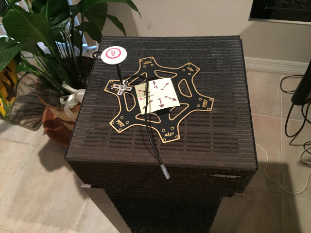 At the top of the stack is the top plate, GPS antenna facing down into the pile.